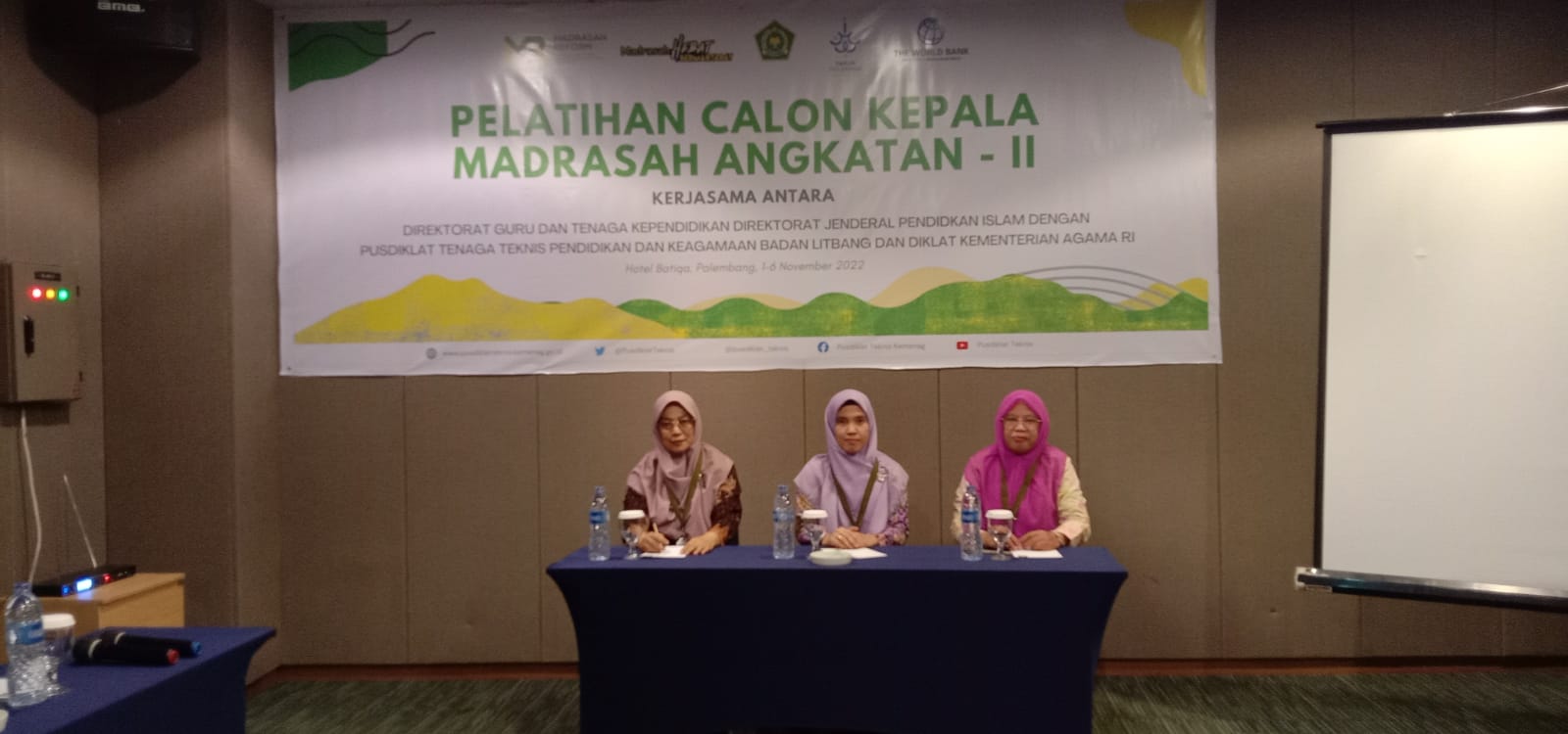 Ogan Ilir, (Humas_MTsN 2 Ogan Ilir). Sebanyak 3 orang Waka MTsN 2 Ogan Ilir; Tiana Rizki, M.Pd. (waka kurikulum), Darmiati,S.Ag., M.Pd. (waka kesiswaan), dan Dedeh Haryati,S.Pd., M.MPd (waka Humas) mengikuti Pelatihan Calon Kepala Madrasah Angkatan II. Pelatihan ini merupakan kerjasama antara Direktorat Guru dan Tenaga Kependidikan Direktorat Jenderal Pendidikan Islam dengan Pusdiklat Tenaga Teknis Pendidikan dan Keagamaan Badan Litbang dan Diklat Kementerian Agama.